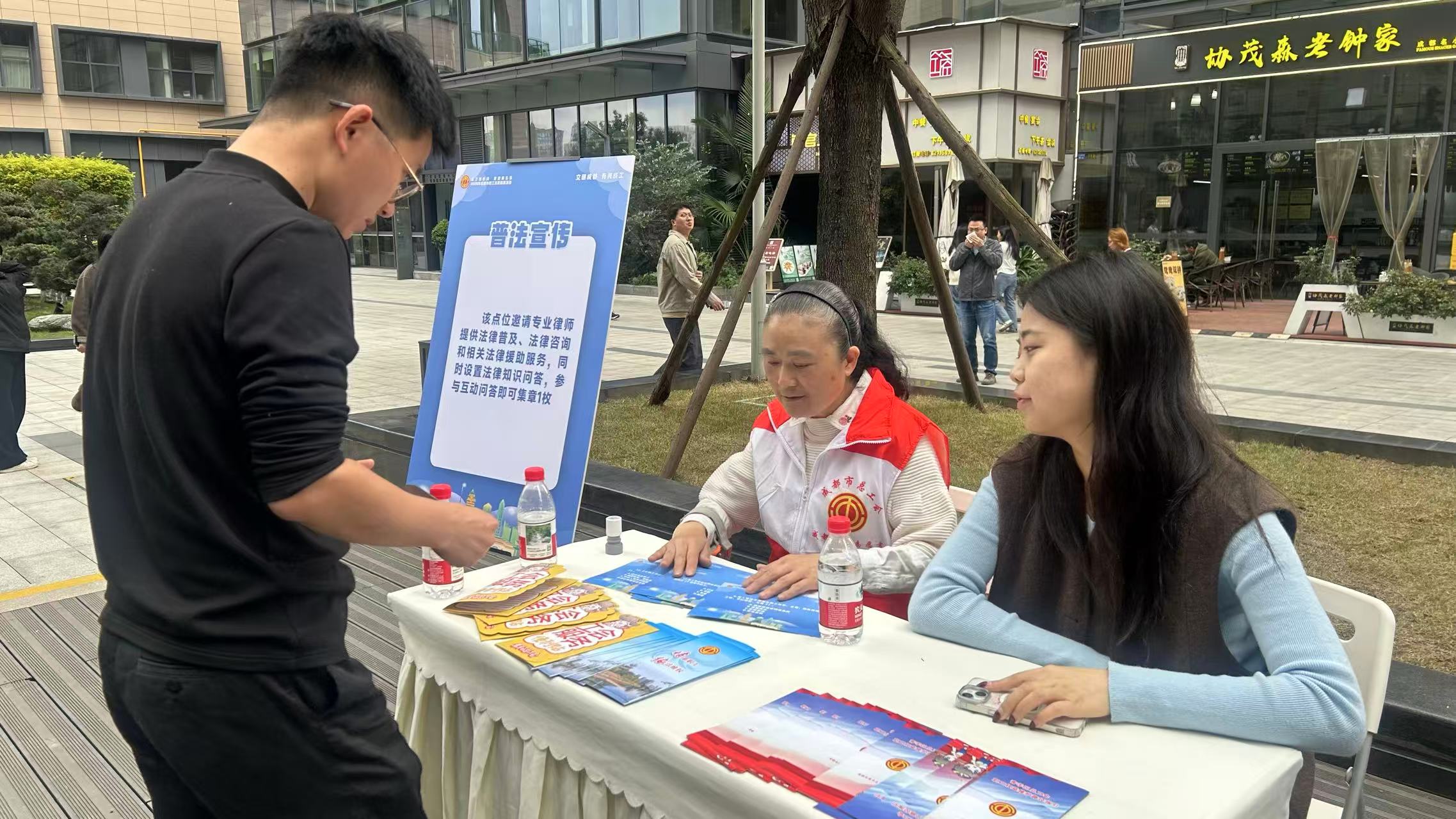 健康义诊与按摩体验区温情暖心,来自成都市青羊区中医医院的中医志愿者现场把脉问诊,科普慢性病养护与健康防护知识,还带来了专业按摩服务,针对性舒缓肩颈劳损,为职工消解职场疲惫;在职业病科普摊位上,志愿者讲解了常见职业病预防要点和职业健康防护技巧,切实守护职工健康;在趣味匹克球互动中,职工们两两组队、同台对打,跟着志愿者解锁运动新技能,在欢声笑语中释放压力、享受运动乐趣;在普法宣传台前,专业律师面对面答疑解惑,普及劳动权益保护等相关法律知识,切实提升职工法治素养与维权意识。
