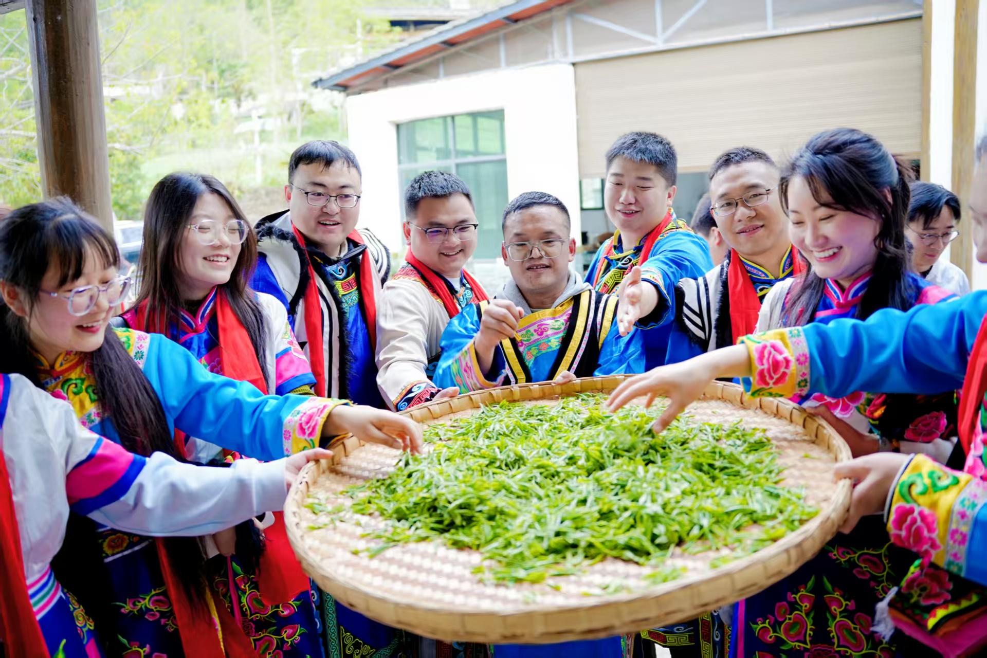 当日上午,青年职工身着统一民族服装,在热情洋溢的献羌红仪式中感受浓郁的民族风情。破冰分组后, 男女搭档一起走进茶园,开启限时采茶活动。大家腰挎竹篓,穿梭在茶树间,手指轻捻枝头鲜嫩的芽叶,小心翼翼地将芽叶采下放入篓中。青年们一边细心采摘茶叶,一边闲聊日常、交流采茶小技巧,欢声笑语伴着茶香在山间回荡。下午,大家又在制茶师傅的指导下体验搓茶、炒茶等传统工艺,并接受茶商专业评定,在茶香中感受团结协作的乐趣。 吴健谢韫铮摄
