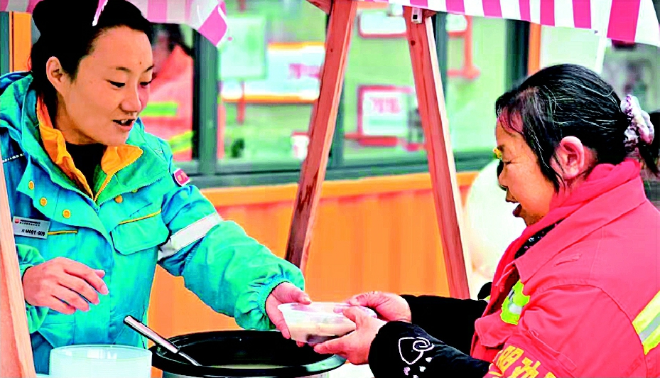 余金蓉为户外劳动者热饭菜