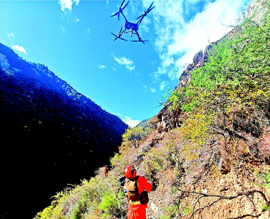 消防员在甘孜州雅江县河口镇使用无人机巡查 刘清峰摄