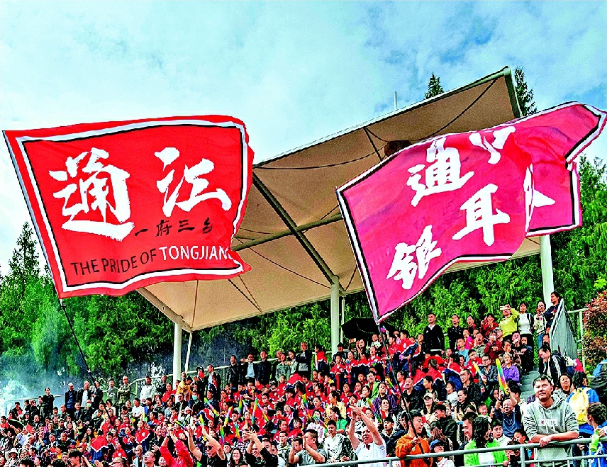 看台上,印有“通江”等字样的旗帜迎风飘扬,观众们挥舞双手、齐声呐喊,为参赛队伍加油鼓劲,现场氛围热烈浓厚,充分展现了群众对运动的热爱与蓬勃向上的精神风貌,是全民健身运动蓬勃开展的一个生动缩影。 程聪摄