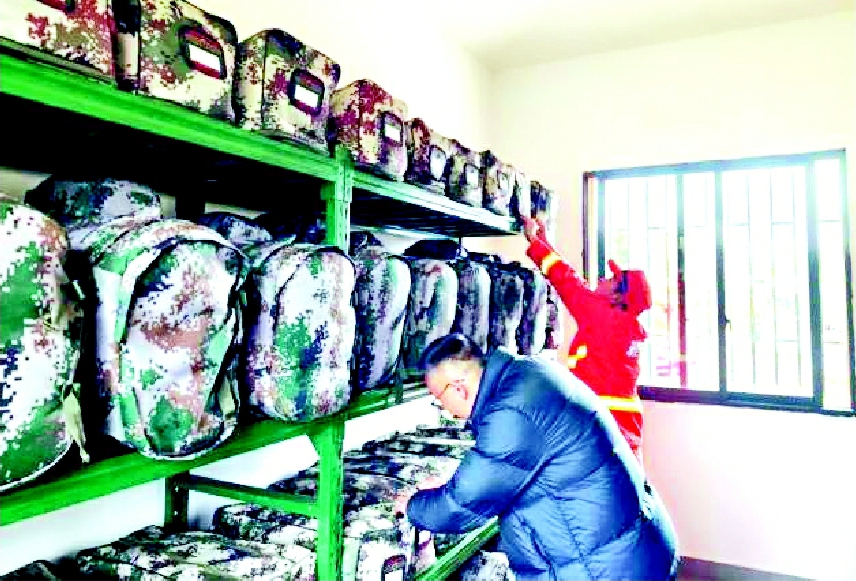 应急队员检查储备物资
