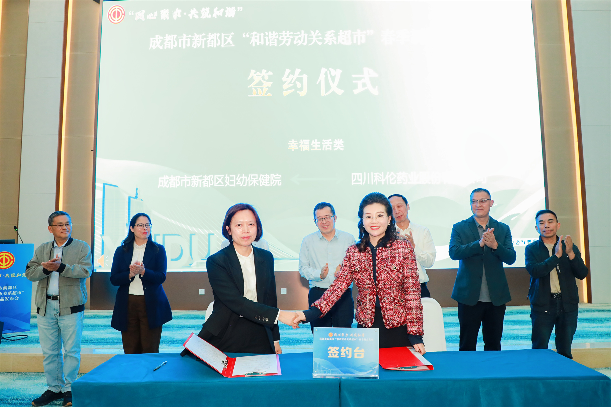现场合作签约仪式上,四川开辰律师事务所与中通快递新都分公司、成都航空职业技术大学与中铁建大桥局五公司、新都区妇幼保健院与四川科伦药业股份有限公司,分别围绕权益保障、成长发展、幸福生活三大领域签署合作协议,标志着本次发布的服务产品正式落地,直达企业和职工身边。