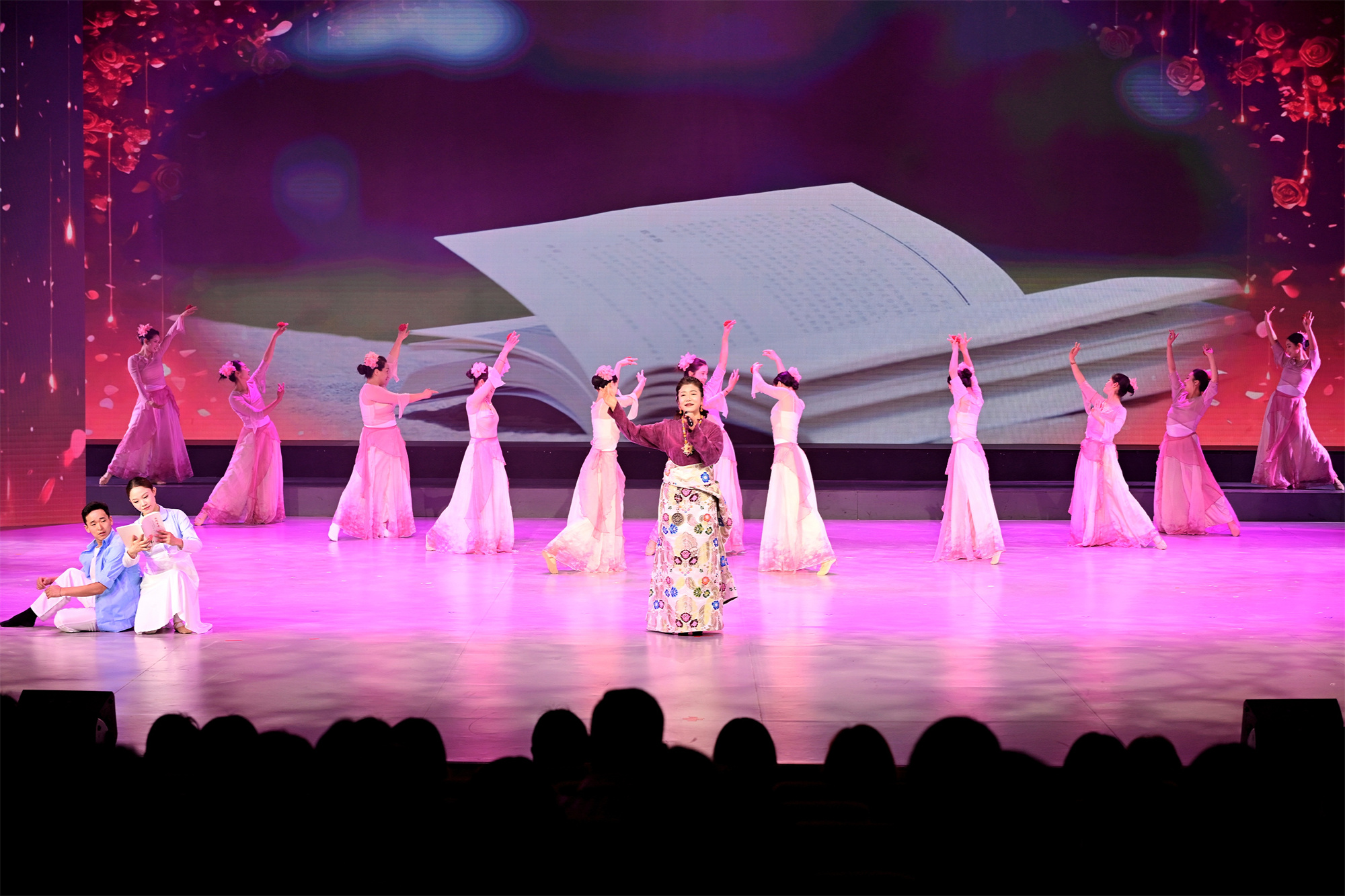 在配乐朗诵《墨香润心·巾帼诵情》中,多位在“书香三八”“玫瑰书香”“花开净土书香全域”活动中获奖的女职工依次登台。州教育和体育局尤莉用真挚感悟道出阅读如何润泽人生;马尔康市康诚幼儿园蔡赛兰深情表达“最美丽的风景是心灵的净土,最动人的全域是书香弥漫的人间”;州人大常委会马曦将母女共读的温情画卷缓缓铺展;阿坝州外国语实验小学的两组学生家庭用亲子共读传递“书香传家”的美好理念。
