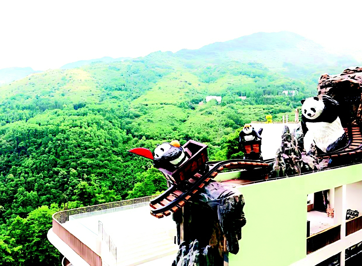 “我们主动关联华蓥山大熊猫苑的熊猫IP,将熊猫形象与矿山改造深度绑定。”民宿副店长邹强告诉记者。作为当地科普教育基地,华蓥山大熊猫苑已引入“林溪”“一家”两只大熊猫,成为本地生态旅游的标志性项目。如今,从嘿矿熊猫民宿向上行,可观独特石林,或看大熊猫“林溪”“一家”;向下行,可体验漂流,到乡镇享受农家风味。