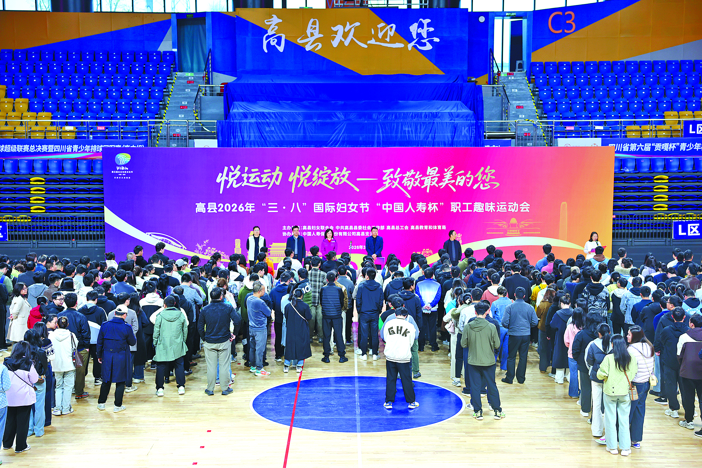 2026年3月6日,高县在翰笙文体中心综合馆举办庆祝“三八”国际妇女节职工趣味运动会