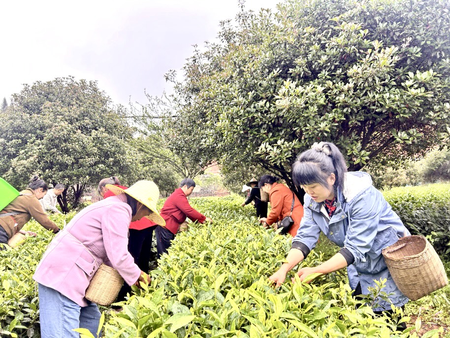 当天上午,在梅岭村茶叶种植基地,技术人员围绕茶叶等级识别、标准化采摘手法等内容进行现场讲解,重点演示了“两叶一芽”的采摘标准。随后,村民们走进生态茶园,在技术人员“一对一”指导下进行实地采摘练习,从识别茶青到手法纠正,逐一上手操作,确保学懂弄通、熟练掌握。“以前觉得采茶就是随便掐,没想到里面门道这么多。”村民张世焱感慨道,学会这门手艺,明年就能稳定务工增收了。