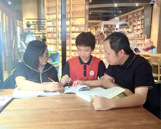 邓定鲜(左)和家人一起阅读 受访者供图