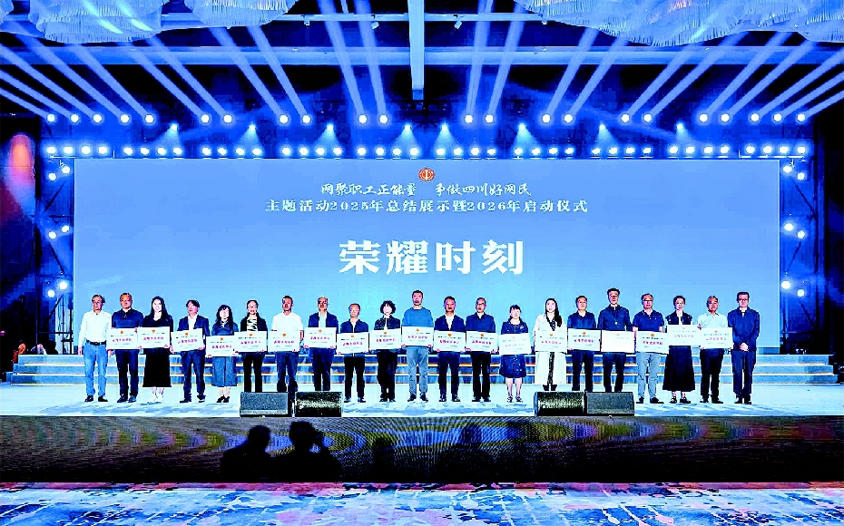 活动为获得2025年主题活动网络正能量歌曲、微短剧、诵读、动漫、摄影、网络评论、新媒体账号、数字化及人工智能应用场景、创新活动等类别优秀作品代表,以及四川省正能量职工网络达人代表颁奖。成都市总工会等19个单位获评“表现突出单位”。