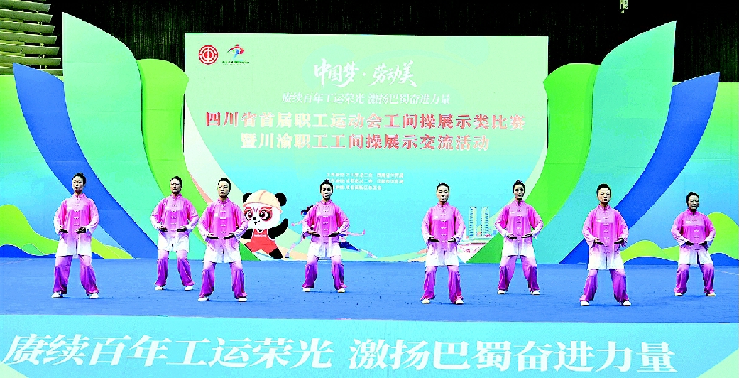 本报讯(记者邓霞/文 石家豪刘满/图)9月17日,由省总工会、省体育局主办的四川省首届职工运动会工间操展示类比赛在成都高新体育中心开赛。来自全省各市(州)总工会,省产业(局)、企业集团(公司)工会的11支太极拳参赛队和22支八段锦参赛队精彩亮相。这也是四川省首届职工运动会率先登场的两个比赛项目。