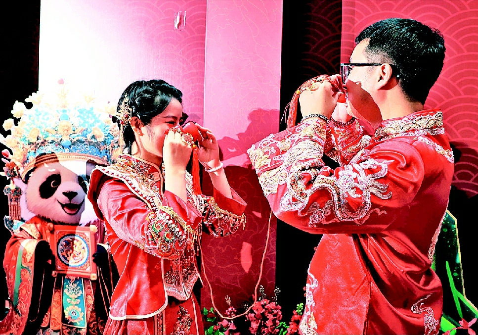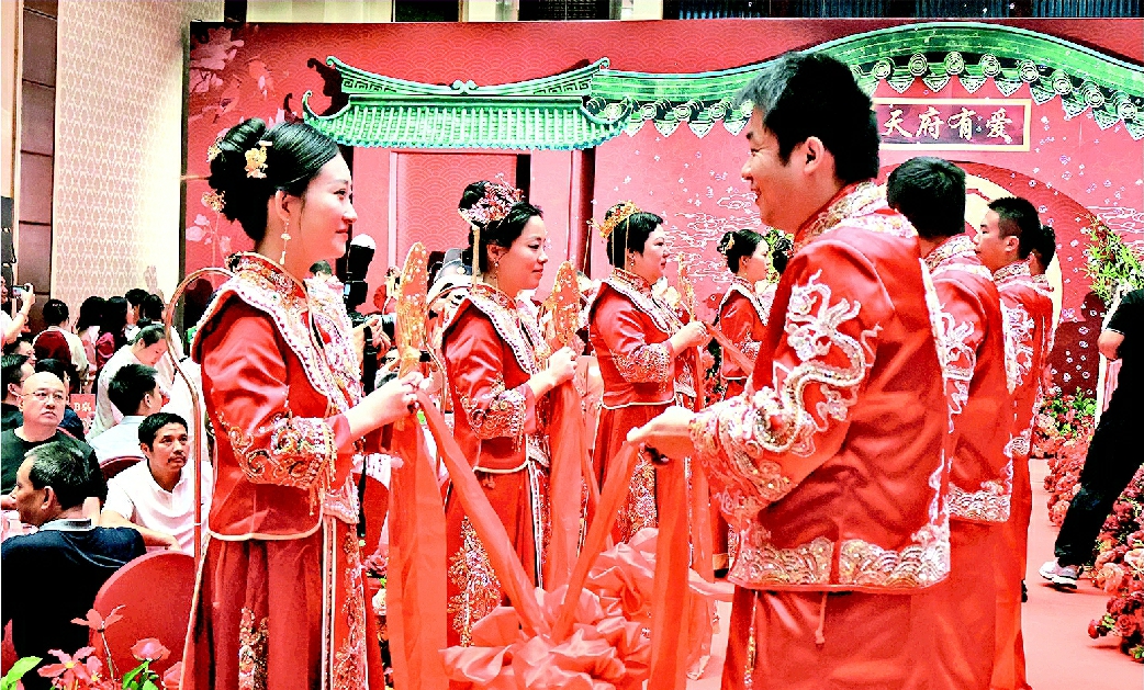 婚礼尾声,精彩杂技、川剧变脸与欢快歌曲轮番上演,将现场气氛推向高潮。掌声、笑声、喝彩声交织在一起,汇成一片幸福的海洋。