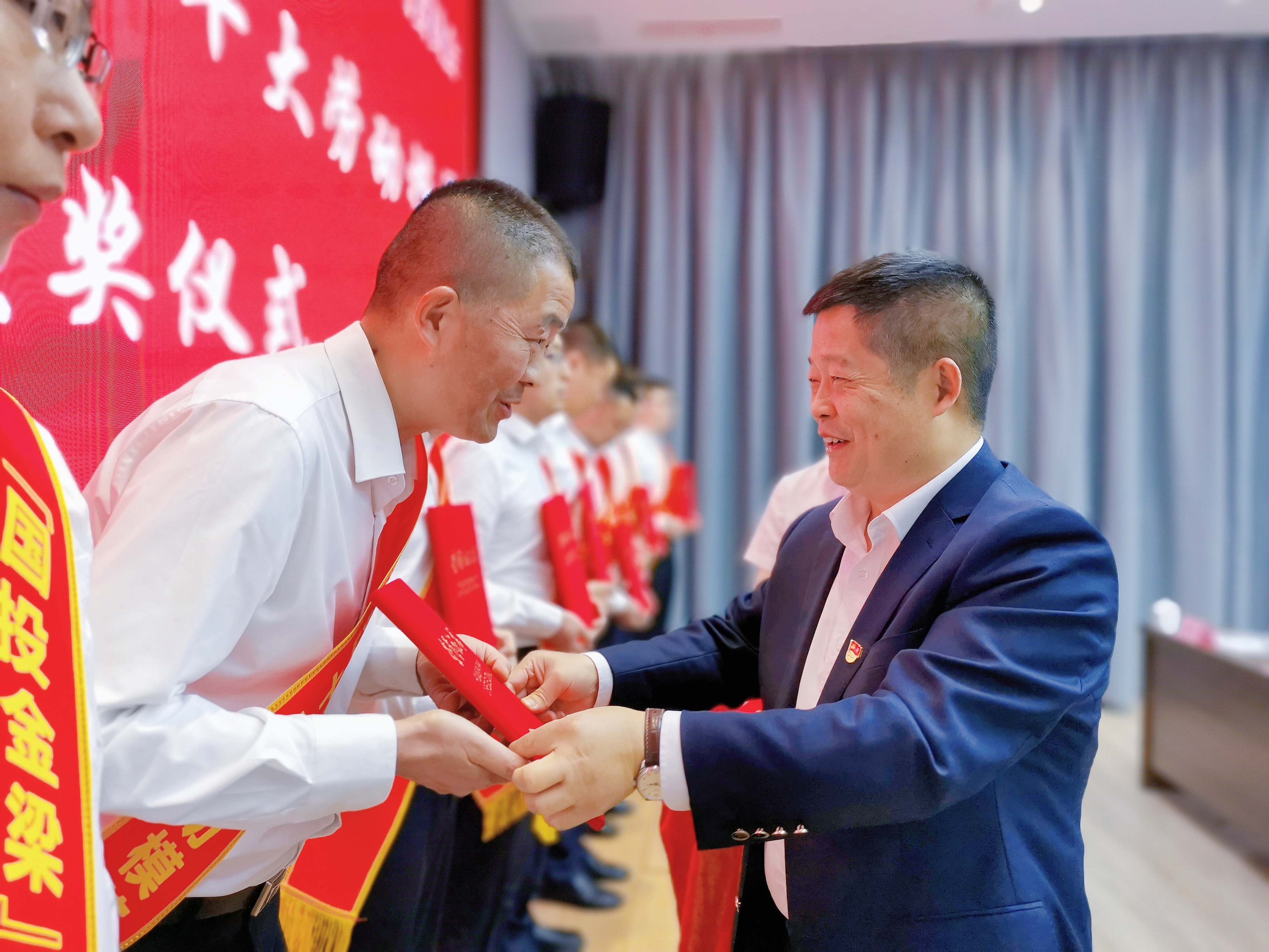 李志祥(左)荣获2023年眉山国投集团“国投金梁”十大劳动模范