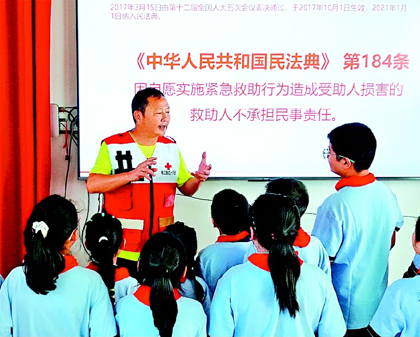 每在一个宣传现场,宣讲人都以动画短片引入,用童趣语言解读法律知识,结合“校园小纠纷”“文具被同学损坏该如何维权”“实施紧急救助行为造成被救助人损害怎么办”等贴近生活的案例和问题,用“问题+情景模拟”形式,普及了相邻关系与友善原则。同时,现场还设置“有奖小问答”互动环节,并通过现场颁发奖状鼓励答题优胜者积极学法守法。