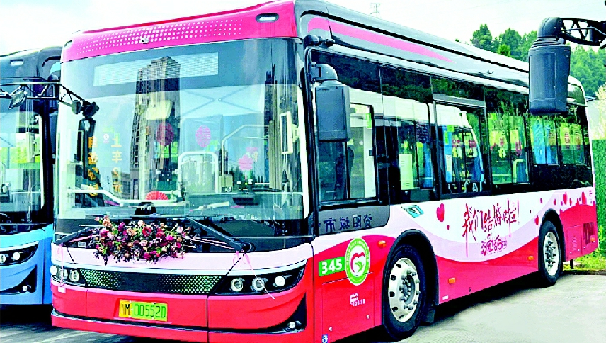 近日,资阳街头多了一抹别样的“浪漫风景线”---一批全新纯电动公交车正式“上岗”,其中两辆特别定制的“公交婚车”更是凭借新颖创意火出了圈,让绿色低碳与浪漫婚礼撞了个满怀,成为市民热议的“网红新宠”。