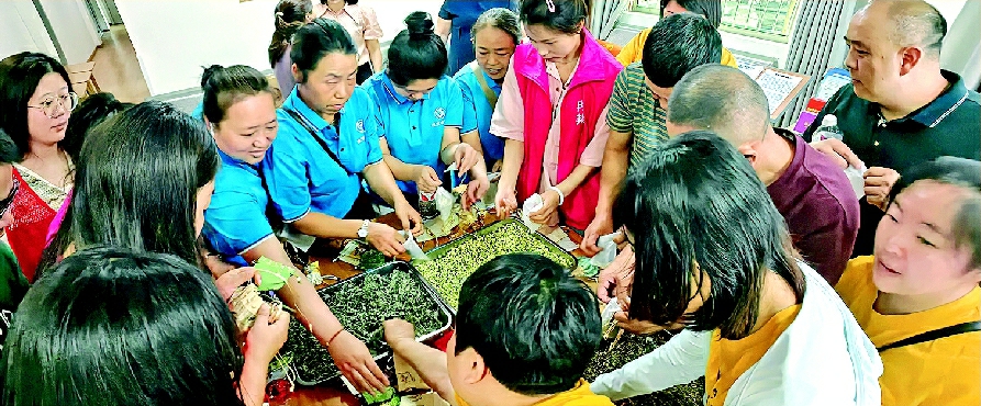 今年端午节期间,利州工会组织举办的家政服务员和女性外卖员制作端午香包活动