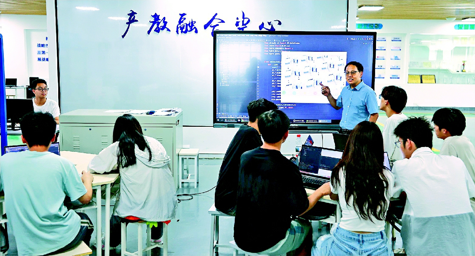 “现在,我们院系的学生在进入大二大三后,可以通过‘成绩置换’的方式,将部分专业课程的学习转移到‘工匠班’中,以项目制的方式进行。”刘宝锺介绍:“我们通过定时或者不定时授课的方式,定期讲授基础内容,但更多时间是聚焦于学生实操技术的提升。”“工匠班”的课堂上,各种项目载体丰富,既有争夺荣誉的参赛项目,也有来自企业的真实课题。学生们在这里既可以研讨方案,也可以在设备上反复练习,对知识的理解及掌握也比在传统班级里更为扎实。