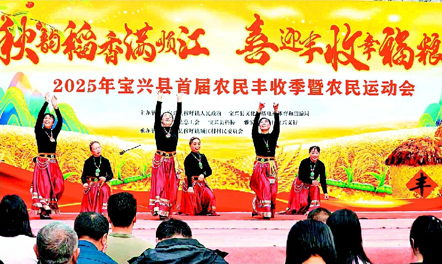 本报讯(宝工文/图)10月15日,位于雅安市宝兴县的穆坪镇顺江村大马村组一片欢腾,以“秋韵稻香满顺江,喜迎丰收幸福粮”为主题的2025年宝兴县首届农民丰收季暨农民运动会在这里举行。活动旨在喜庆农业丰收成果,弘扬悠久农耕文化,激发乡村振兴奋进力量,全面展现新时代宝兴农业农村发展的崭新气象和农民群众的幸福风貌。