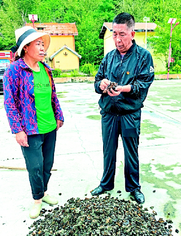 翁姑果各(右)给村民讲解木耳栽培技术