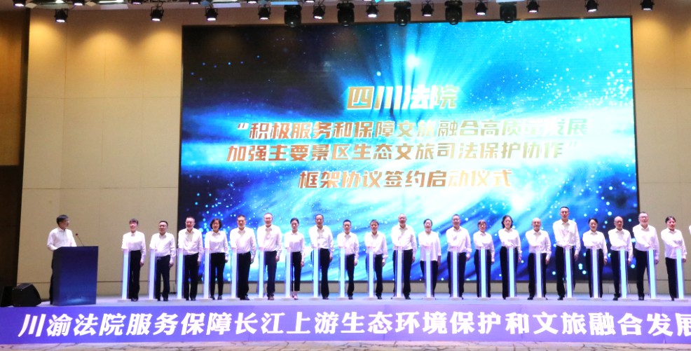 会上,四川省22家中院签订《“积极服务和保障文旅融合高质量发展,加强主要景区生态文旅司法保护协作”框架协议》,明确了协作目标、原则、机制,从加强自然资源和人文资源保护、依法平等保护文化旅游市场主体合法权益、维护文化旅游市场秩序三个方面提出了具体要求。