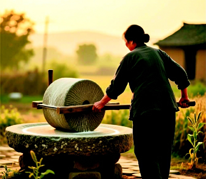 伴随着石磨吱吱嘎嘎的声响,母亲就这样一圈又一圈地推着。她碾过了岁月的风霜,也碾过了清贫的四季,将那些艰辛的日子,磨得细腻而温暖;也将那份深沉的母爱,无声地融进了我们的生命里。如今回首,那石磨上镌刻的,何止是岁月的痕迹,更是母亲辛劳一生的印记。这一切,我将永远铭记。