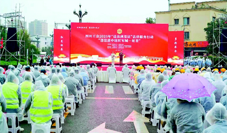 本报讯(姚雪梅刘嘉记者向晓文)10月23日,四川工会2025年“送法到基层”法律服务行动走进旺苍县,为200余名基层工会负责人、新就业形态劳动者、各领域职工代表等送上了一道丰盛的“法治大餐”。此次活动由省总工会、省司法厅、省人社厅、省劳动人事争议仲裁委员会主办,广元市总工会、旺苍县委、县政府承办。省总工会党组成员、副主席,机关党委书记王超出席活动并讲话,广元市委常委、市总工会主席陈正永出席活动。