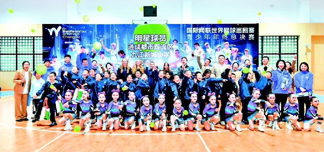 本报讯 (记者黄瑞)10月24日,2025国际网联世界网球巡回赛青少年年终总决赛的参赛球员们走进成都市双流区九江新城小学,在紧张的赛程间隙与学生们进行了一场充满欢声笑语的“切磋”与互动。据了解,“球员进校园”是本届青少年网球年终总决赛的配套活动之一,旨在促进网球运动在青少年中的普及,加强赛事与举办城市的互动。