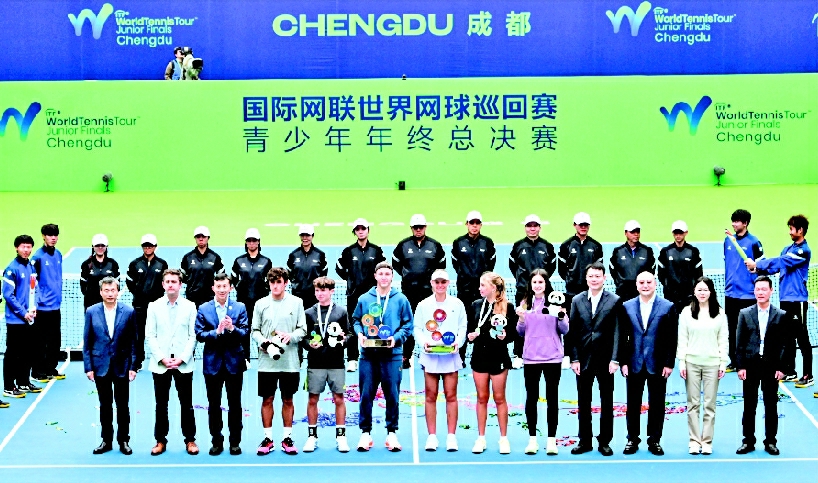 本报讯(记者黄瑞)10月26日,2025国际网联世界网球巡回赛青少年年终总决赛在四川国际网球中心收官。作为全球青少年网球的最高荣誉舞台之一,本届赛事汇聚了16位世界顶尖高手,在成都历经5日激战,奉献了多场代表世界青少年网球最高水平的精彩对决。最终,男女冠军分别由德国选手马克斯·舍恩豪斯和比利时选手杰琳·万德罗姆摘得。