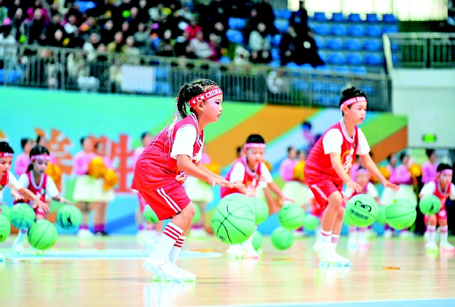 记者看到,小朋友们手中的篮球时而在空中飞舞,时而在地面有节奏地拍打,动作整齐划一,配合默契。更让人惊喜的是,队伍中女孩子们的表现丝毫不逊色于男孩,个个身手矫健,展现出了飒爽英姿。